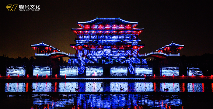 In the beautiful scenery of Tang Paradise Garden, with Ziyun Palace as the backdrop, the front square and the Furong Lake are decorated as the performance area. We combine modern sound, light, digital technology with history, folk customs and culture to show the ancient sleepless Chang’an city .