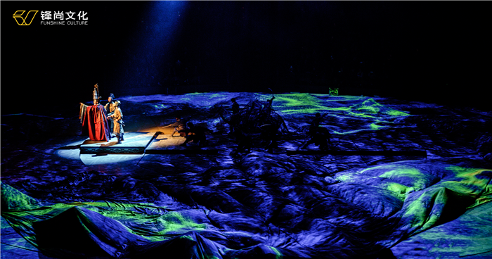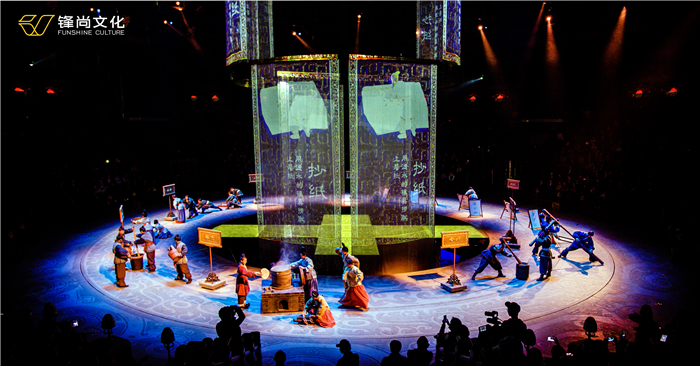 We use 360° omnidirectional immersive performance with the arch-shaped internal structure which is the aesthetic architectural style in Han Dynasty, and the modular large lifting system matrix, wire system and HD circular-screen, the plot is displayed to the extreme, creating the best viewing effect. We have developed brand new performing methods, especially the high-altitude suspended “counter-space” performance, the ropeway array downhill, and the interactive performance of people and images, combined with the performance of poetry, music, dance, ritual, etc. It is the first time to combine the complicated stage machinery with cutting-edge technology in an indoor performance.