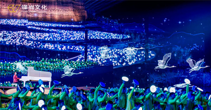 【英国上市公司365】视频设计团队在内容元素设计上紧紧抓住整台晚会的创作主题,分别选取了九曲黄河、丰收的麦田、以及具有浓厚中原文化的历史性符号,影像风格以写实主义为主基调。在此基础上他们大胆运用强烈的对比色彩、大块面的构图技巧,并借助现场通透的LED网幕与20000多名演员有机结合,时而波澜壮阔、时而浪漫恬静、时而激情澎湃,给全国观众带来一场精彩绝伦的视觉盛宴。