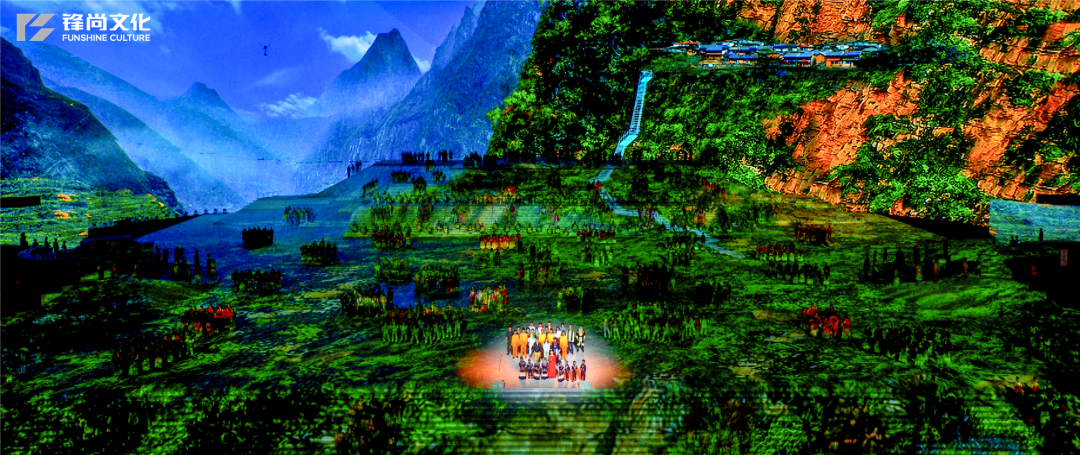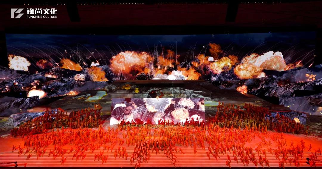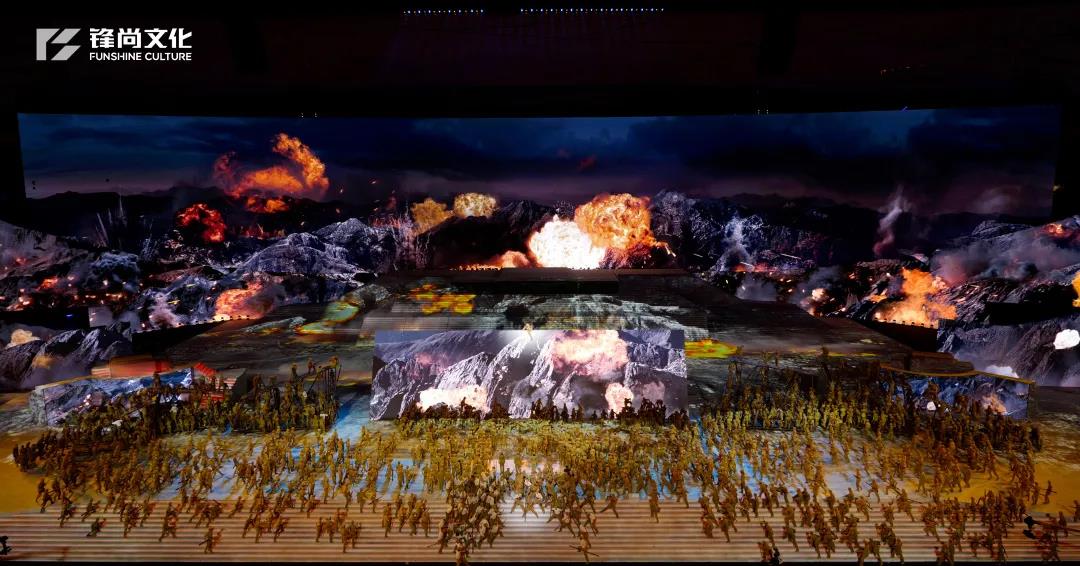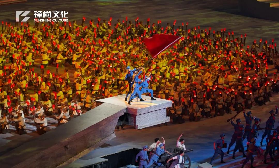 在充分发挥广场表演震撼力的同时,融入戏剧情景式表演、再造电影纪实性场景和数字化视频影像,是广场表演和舞台表演与视频影像表演深度融合,形成多空间、多层次、全方位“共时并进”的中国特色艺术表现形式。