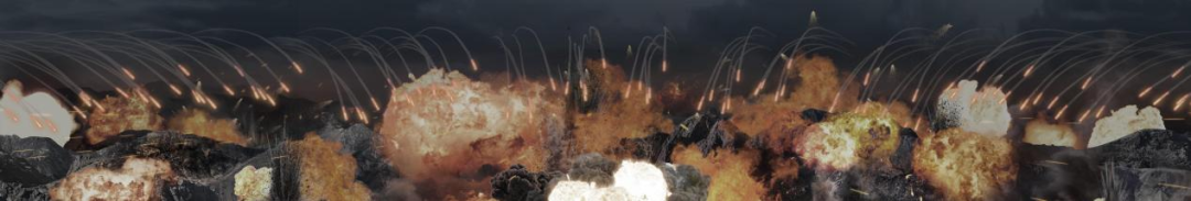 《战旗美如画》篇章以灰色为基本调色,配合战火的暖色调来反映战争的残酷与战斗英雄们舍生忘死的伟大情怀。在那个时代背景下,凝重深情地勾勒出鲜明的“家国情怀” ,背景视频主要选择了当时的上甘岭战场作为主要环境,仿照当时的上甘岭战役地形, 运用写实风格与浪漫主义相结合的手法,处理了整体氛围,制作了战场场景。