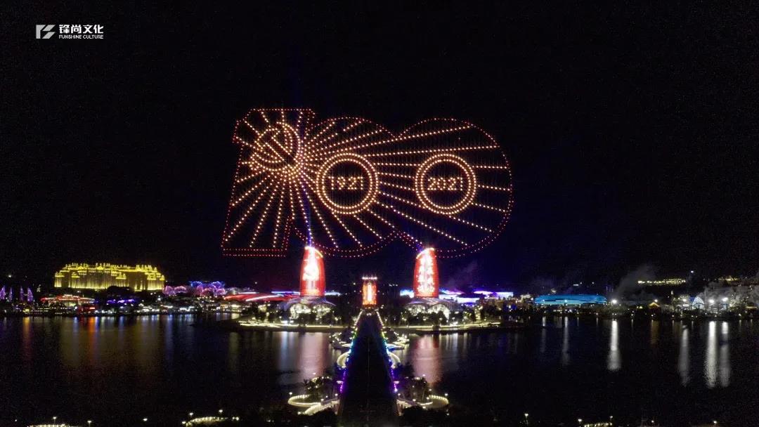 为庆祝中国共产党成立100周年,2021年6月30日【英国上市公司365】子公司---【北京锋尚煜景文化艺术有限公司】与【恒大童世界集团】联袂推出“感恩伟大的党”-庆祝中国共产党100周年海花岛光影烟花秀活动。在祖国南海恒大海花岛童话世界,奏响出脍炙人口的红色经典乐曲,用编控灯光影像与空中的烟花及无人机相结合完成演绎,呈现出气势恢宏,绚烂璀璨之壮景。