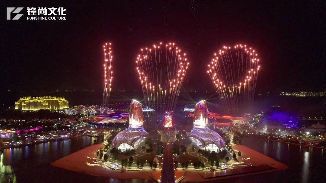 本次表演的“焰火部分”是海南省第一次“一级焰火”的燃放表演,同时,在整个7分19秒的表演中,海岛上用1200架次的无人机,飞上了超过120米的高空,这也是无人机表演历史当中的一次壮举。