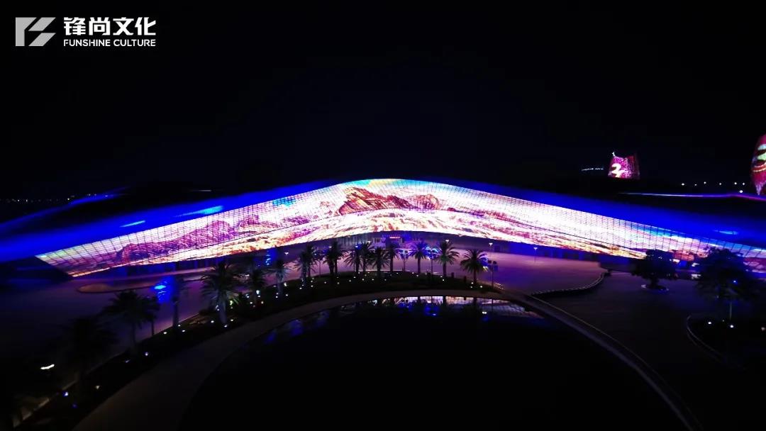 背景音乐以《我和我的祖国》的主题切入,将观众带入演出场景之中;视频画面引入黄河、长江等祖国山河元素,灯光的色彩、明暗、纵深形成变幻,打造节日庆典的热烈气氛。
