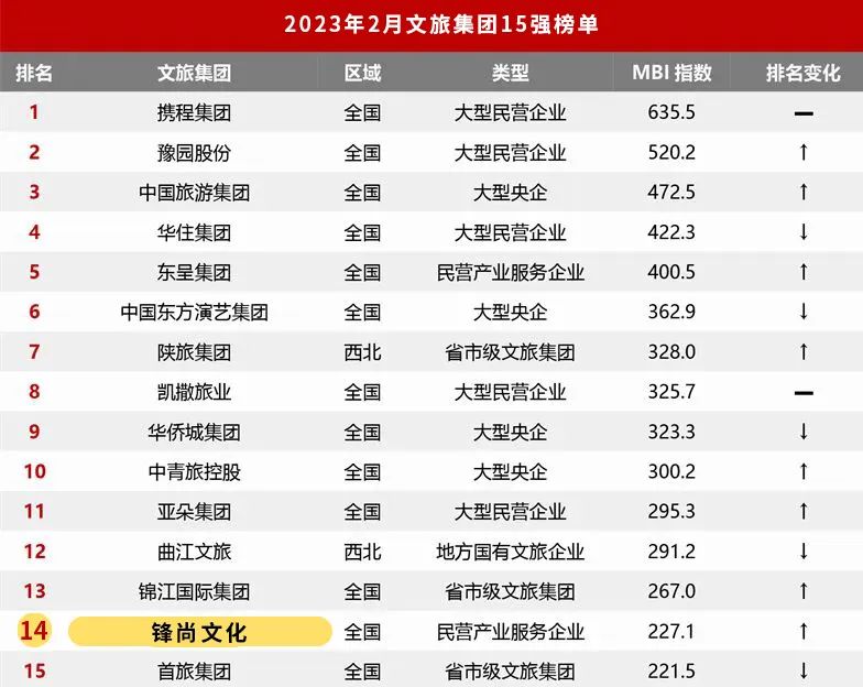 在【迈点研究院】近日发布的《2023年2月中国文旅集团发展报告》中,以迈点品牌指数MBI(文旅集团品牌部分)为依据,从主流指数、大众指数、行业指数和运营指数4个维度综合分析,【英国上市公司365集团】强势上榜,攀升至文旅集团14强,同时在【民营产业服务企业类】排名第二。