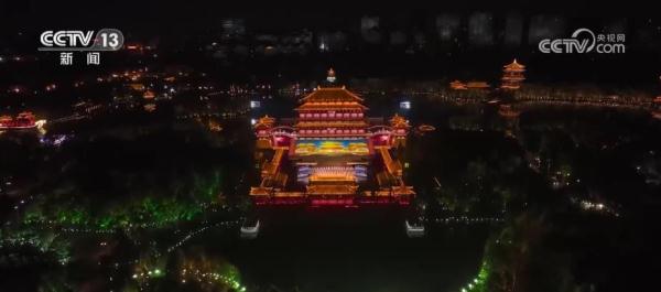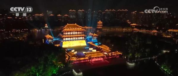 中国—中亚峰会文艺演出总导演 沙晓岚:我们在(紫云楼)二楼、三楼都借助了透明屏(冰屏)这个办法,白天是一模一样的原貌,到了晚上这些冰屏(透明屏)亮起来之后,又让紫云楼(被)赋予了新的影像变化。我们是以地为台子、以楼为幕、人景交融,实现了视听体验与创新技术又一次突破。