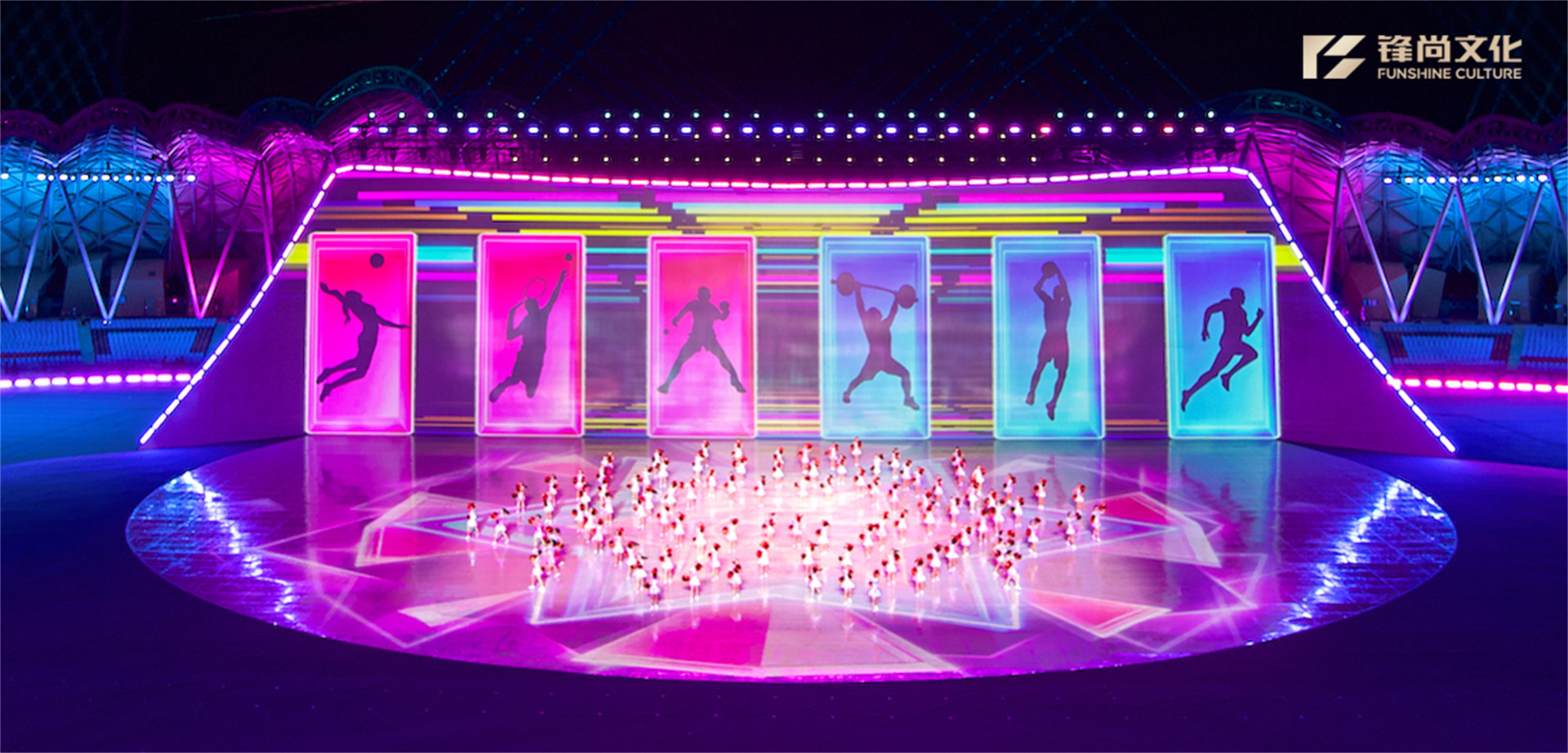 运用灯光的色彩对整个场馆内部的色调进行延伸,通过增强影像的纵深感塑造立体空间。同时打造更具有整体性的氛围感,使舞台场景自然融入其中。