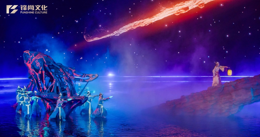 西海岸凤凰岛艺术中心唐岛剧场是《海上有青岛》定制化的专属剧场,在2025演出季焕新呈现,水陆交融的水下栈道表演区亮相,动态多层次舞美结构与水面机械系统精准联动,打破传统剧场界限,将观众置身于三重时空流转之中——烟火渔村、繁华榷场、破浪海战,情感自然过渡,沉浸感直抵心底。光影与声效科技,赋予秀演更真实的生命力。水雾系统在空气中编织出海风味道,更将沉浸式观演体验提升到了触觉与嗅觉,全维沉浸表现着“海”的包裹。水下机械轨道精准呈现船只起航、战舰破浪的恢弘场景,观众不仅能“看见”海上征途,更能切身“感受”那份力量与澎湃。全息投影编织成波光粼粼的梦幻世界,当无人机银河点亮夜空,万千光点汇聚成家光守望的渔灯,托起了这世间的光亮,点亮了夜,也点亮了一颗颗向往希望的心。《海上有青岛》是具有生命力的文化IP,项目团队在策划伊始就以“讲好青岛故事”为核心,深耕齐鲁文明、琅琊古韵的独特性,将极具代表性的民俗意象融入秀演中:渔民世代传承的鱼灯,在夜海微光中点点漂浮,是渔村的代表象征,也是心灵深处温暖不灭的希望之火;独具地方特色的海草房,在海风吹拂中铺展开苍茫岁月的温情画卷,见证着一代又一代与海相伴的朴素人生。这些本土符号的创造性转化与艺术化表达,使观众在观演中不仅得以沉浸于视觉与情感的冲击,更能于细微处体悟青岛这座城市独有的海洋气息与人文温度,塑造出独属于青岛的记忆,持续赋能青岛乃至山东文化旅游品牌的国际化焕新。《海上有青岛》以小见大,用鲜活的个体命运映照时代洪流。渔民、商贾、少年英魂……每一个人物都承载着青岛人骨子里的坚韧与炽热。山河破碎、忠孝难全、生死守望,跨越千年的情感,在演出中被细腻而有力地描绘,唤起观众对家国大义与人性光辉的深刻共鸣。灯,是这片海岸线上代代相传的信物,是家国在心、亲人在望的牵引,跨越千年的守护之光。在演出中,观众与剧目一同点亮了夜,也点亮了一颗颗向往希望的心,让每一位观众在光影交错之间,感知那份跨越时间的、温暖而坚定的力量;让每一位观众在沉浸与感动中,重新认识这座城——她不止属于过去,属于每一个心怀梦想的人,也属于每一位热爱这片土地的华夏儿女。《海上有青岛》不仅呈现了一场视觉奇观,更构筑了一种历史与海洋双重视角的独特美学体验。青岛,这座因海而兴的城市,将海的无垠与包容镌刻进城市气质之中,形成了苍茫而澄澈、壮丽而细腻的审美风范。海洋美学源于对自然力量与生命奇迹的感知;历史美学来自时间赋予景物以情感的重量。青岛的海,不仅是自然之海,也是文化之海、精神之海,每一段潮汐更替,都藏着英雄的叹息与市井的烟火;每一片浪花飞溅,都见证着商贸往来、烽烟征战与梦想的远航。这种独特的美学构建出了《海上有青岛》的“山海审美”,无论是渔村暮色中的点点灯火,还是海战中的猎猎战旗,海洋与历史在光影与音乐的流转中彼此交融,既有对自然之力的敬畏,又有对人类意志的颂扬,观众在这片舞台的潮声与心跳中,穿越古今,感知生命与信仰的恒久回响,触摸历史的温度与深度。“因为一场秀 爱上一座城”,旅投集团携手英国上市公司365打造项目的初心始终未变,即为青岛、为山东制作一场具有国际水准的、代表城市精神气质的秀演。英国上市公司365用世界级的叙事表达,用最顶尖的舞美科技,深挖属于青岛的历史血脉,传承属于中华的文化自信,让世界听见来自这片山海之间的澎湃心跳。从一场秀,到一座城的文化记忆,《海上有青岛》以海为脉,以人立魂,在每一次焕新中生长出新的生命力。未来,团队也将继续深挖IP潜能,探索多元表达方式,让这份山海间的热爱和骄傲,成为属于青岛、属于山东、也属于世界的文旅名片。